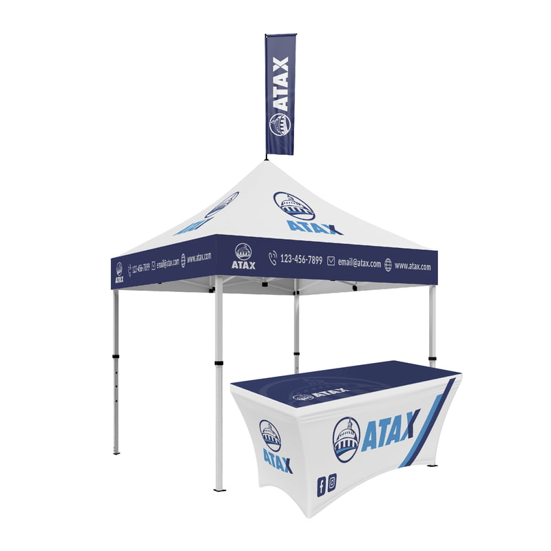 Ultimate Event Bundle - 10ft x 10ft Tent + Peak Flag + 6ft Stretch Table Cover