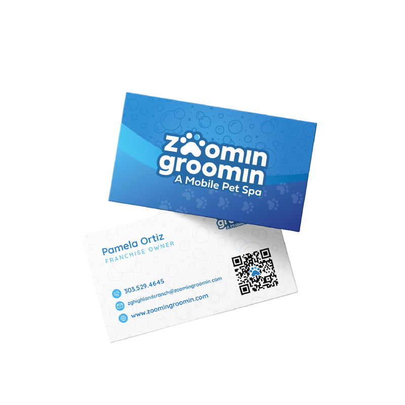 Elevate your professional networking with our Zoomin Groomin 250 Business Cards. Imprinted with full-color Zoomin Groomin branding on both sides, these cards present your brand with impactful elegance.